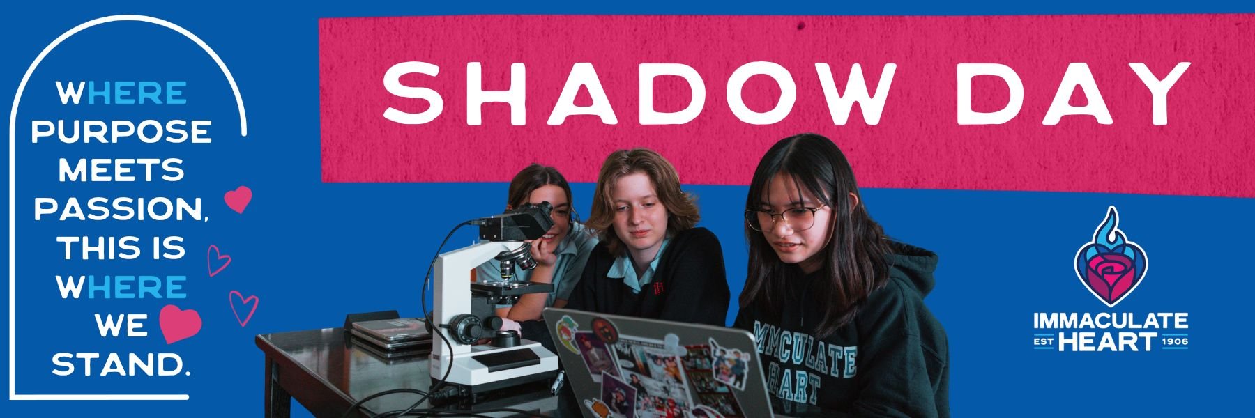Shadow Visits provide an opportunity to see what it's like to be an Immaculate Heart High School student.  Prospective students will shadow a current Immaculate Heart High School Panda, attend classes led by high school faculty, and attend lunch (on us!) in our cafeteria.  During a shadow visit, student visitors get to preview two "academic" classes and one "elective" class.  Parents are also invited to attend a 40-minute same-day parent tour after the student's shadow visit begins.
